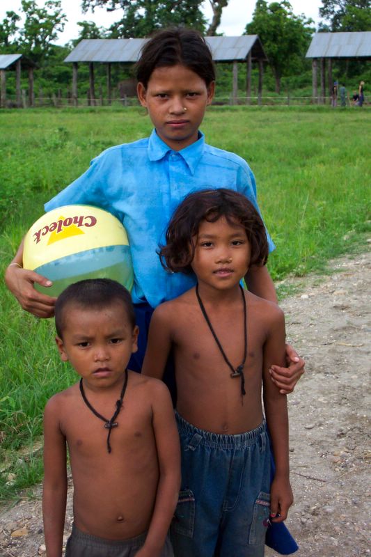 Chitwan - Elephant Breeding Centre -- Elephant handlers' children pose
