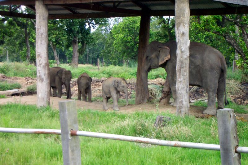 Chitwan - Elephant Breeding Centre -- Mother and babies