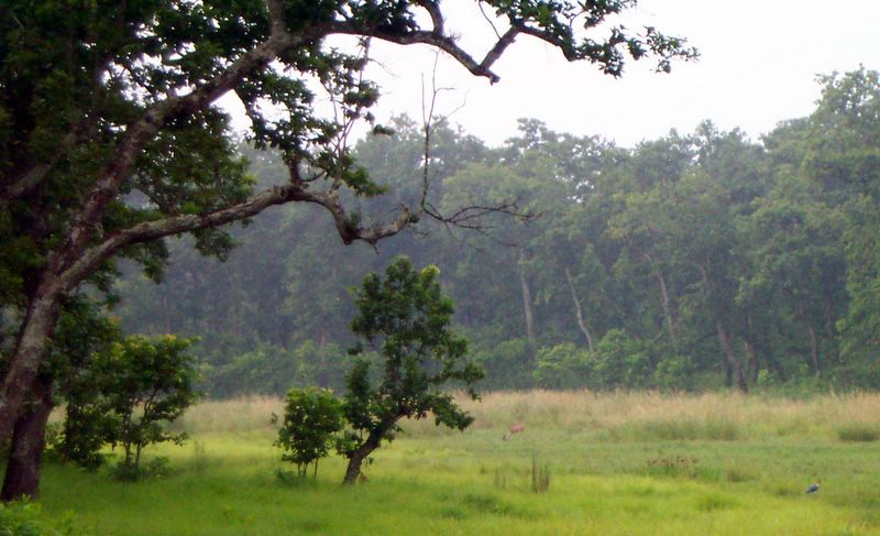 Chitwan - Jeep Safari -- Spotted deer (middle) and stork (bottom right)